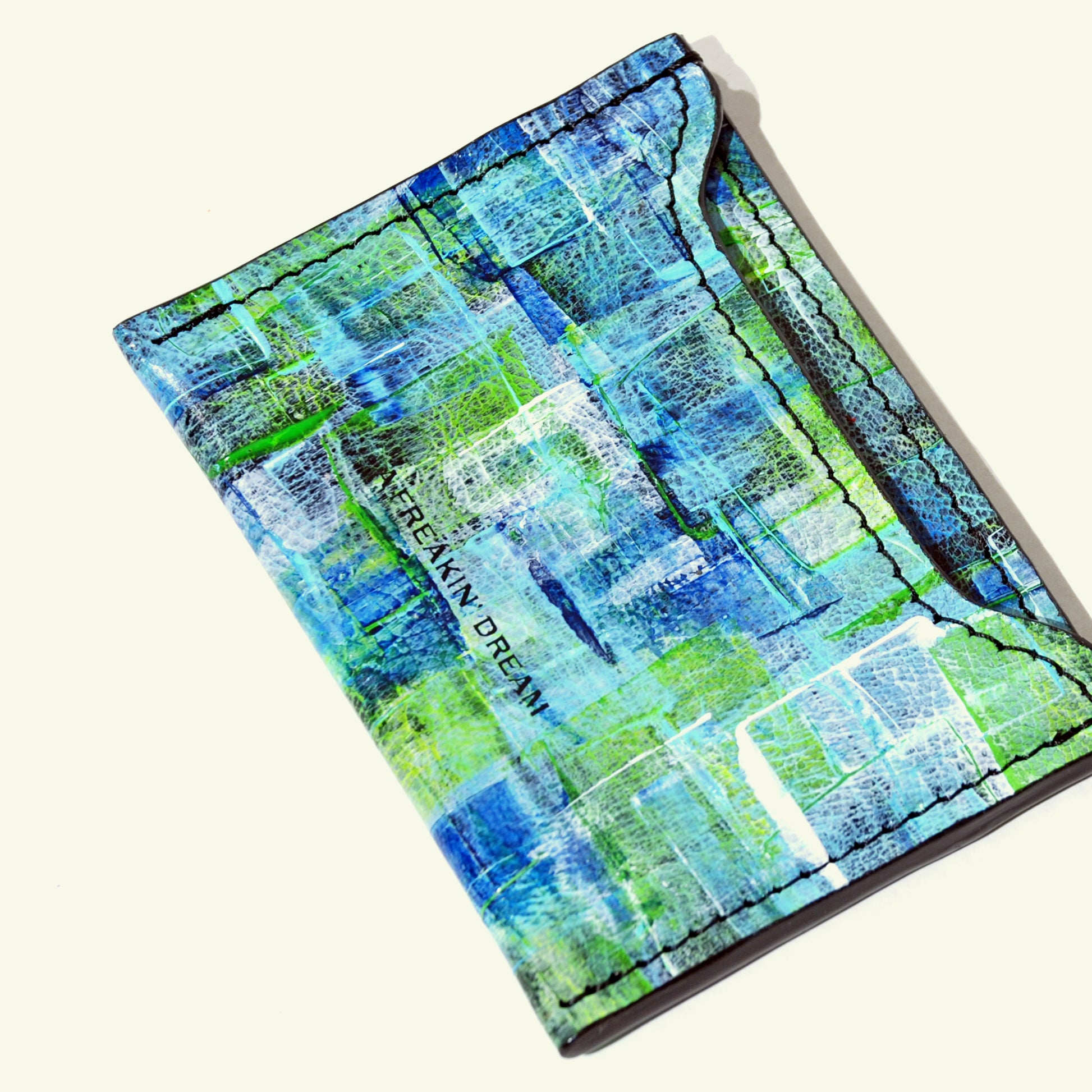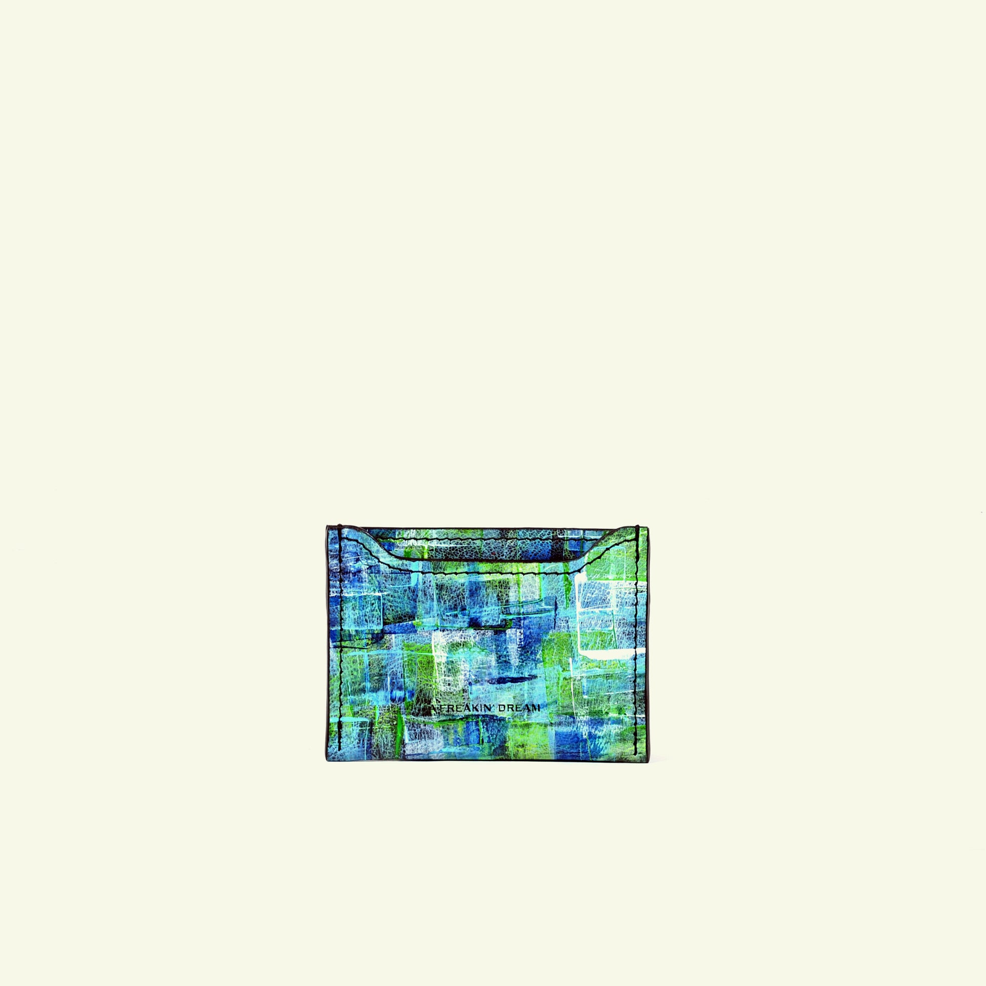 Porte-cartes en cuir de veau aérographié "Our Own Bouclè In Acid Green" – Pièce unique