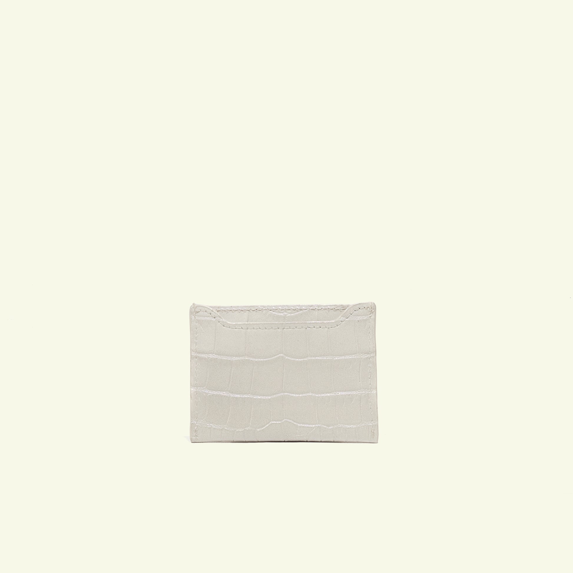 Realizzato a mano a Firenze in vitello premium aerografato, il portacarte Croco Pearl è caratterizzato da una texture goffrata effetto coccodrillo e da una profondità luminosa e perlacea.