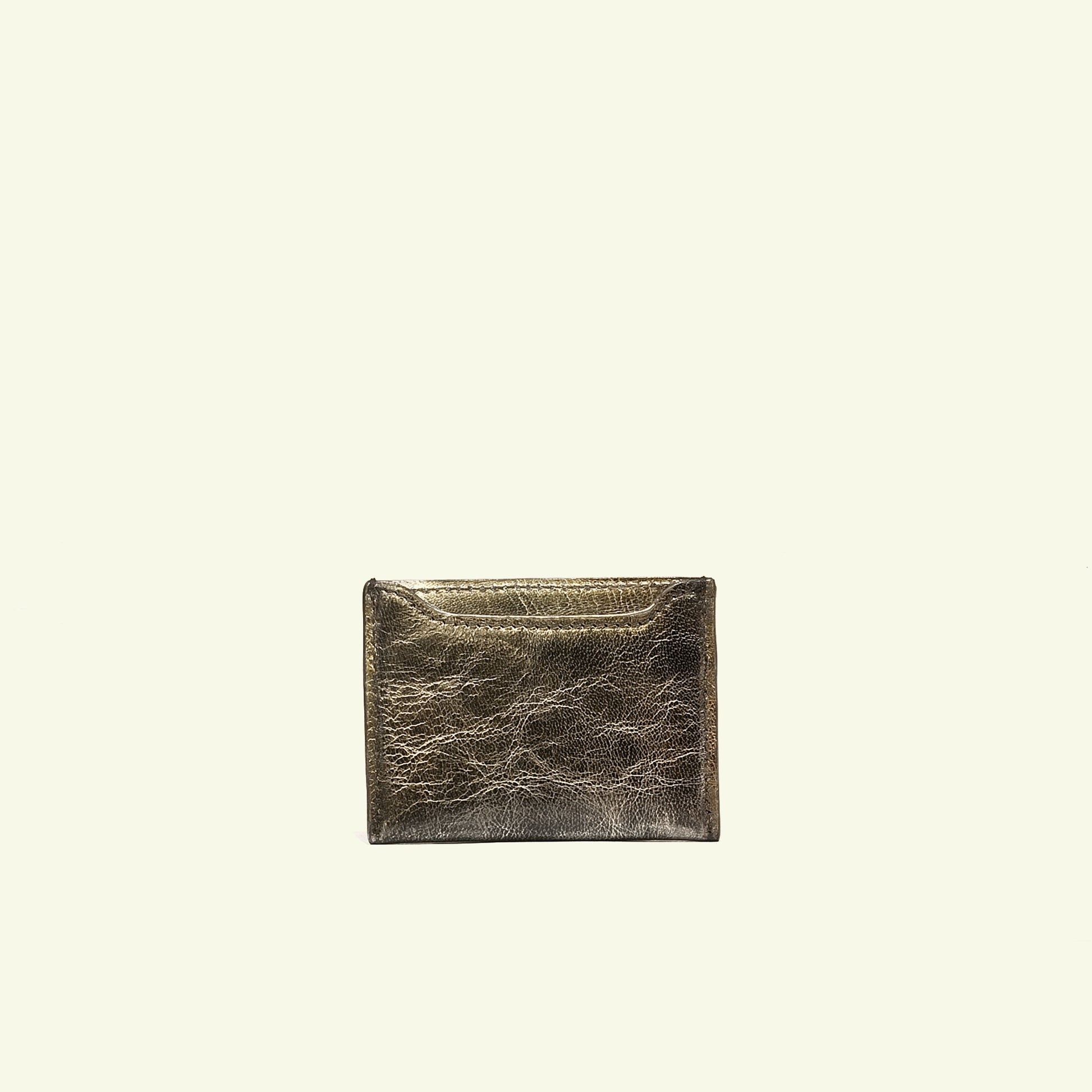 Realizzato a mano a Firenze in vitello metallico aerografato, il portacarte Warm Metal è definito da riflessi dorati caldi e variazioni naturali che rendono ogni pezzo subtilmente unico.