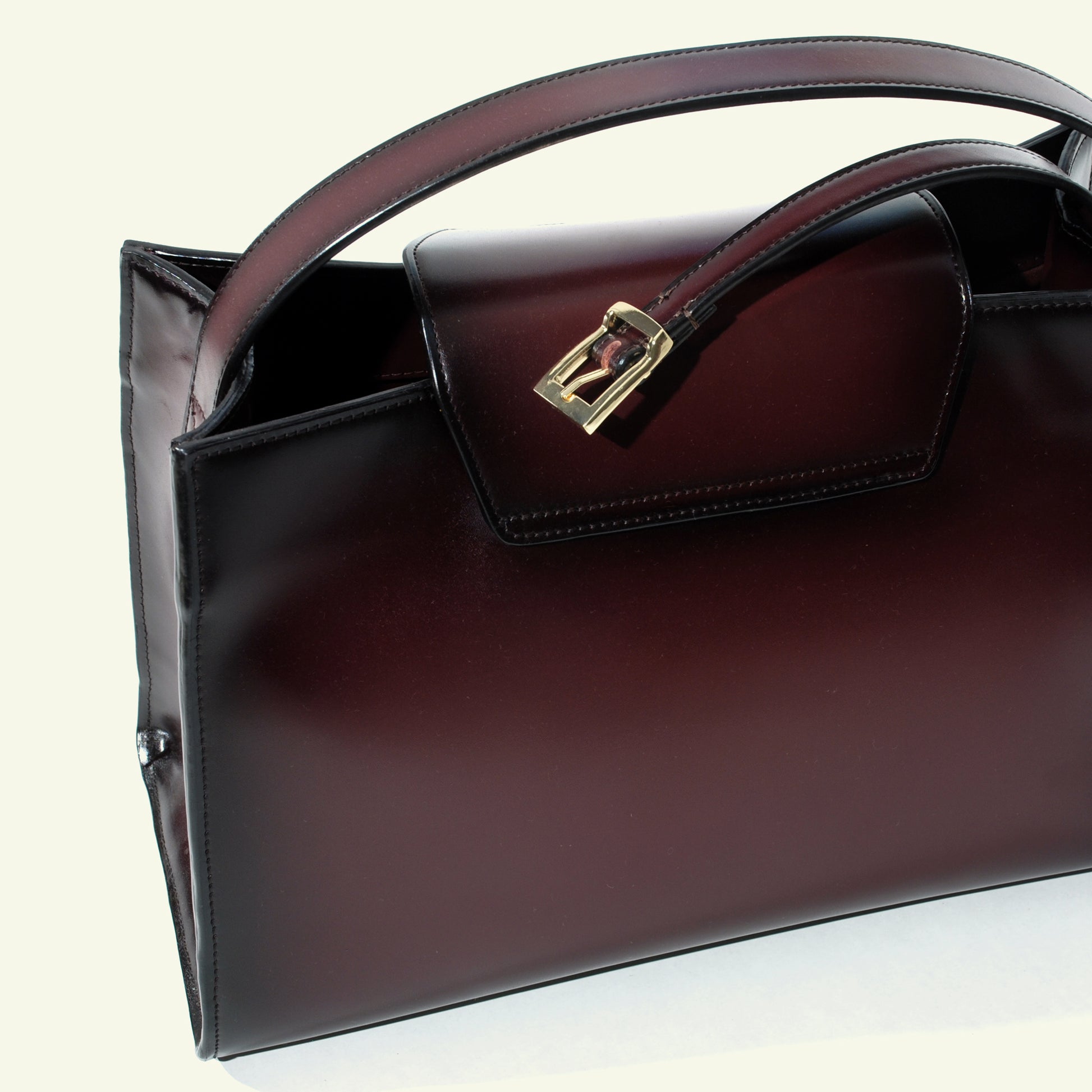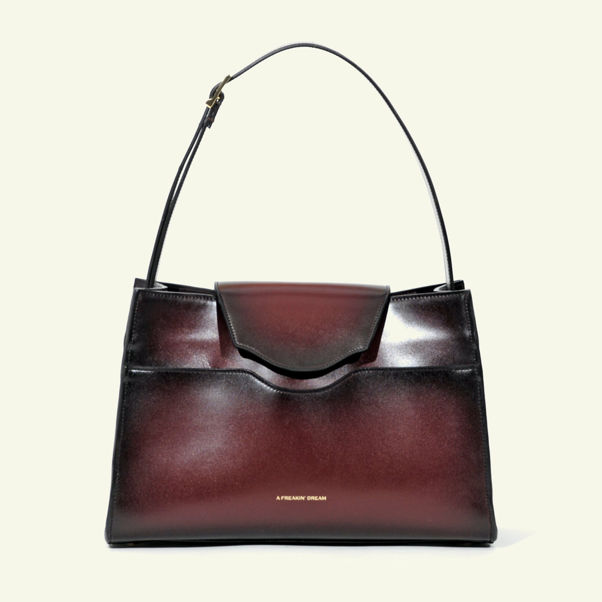 Borsa Pascale grande in pelle aerografata "Shiny Burgundy #45082c"