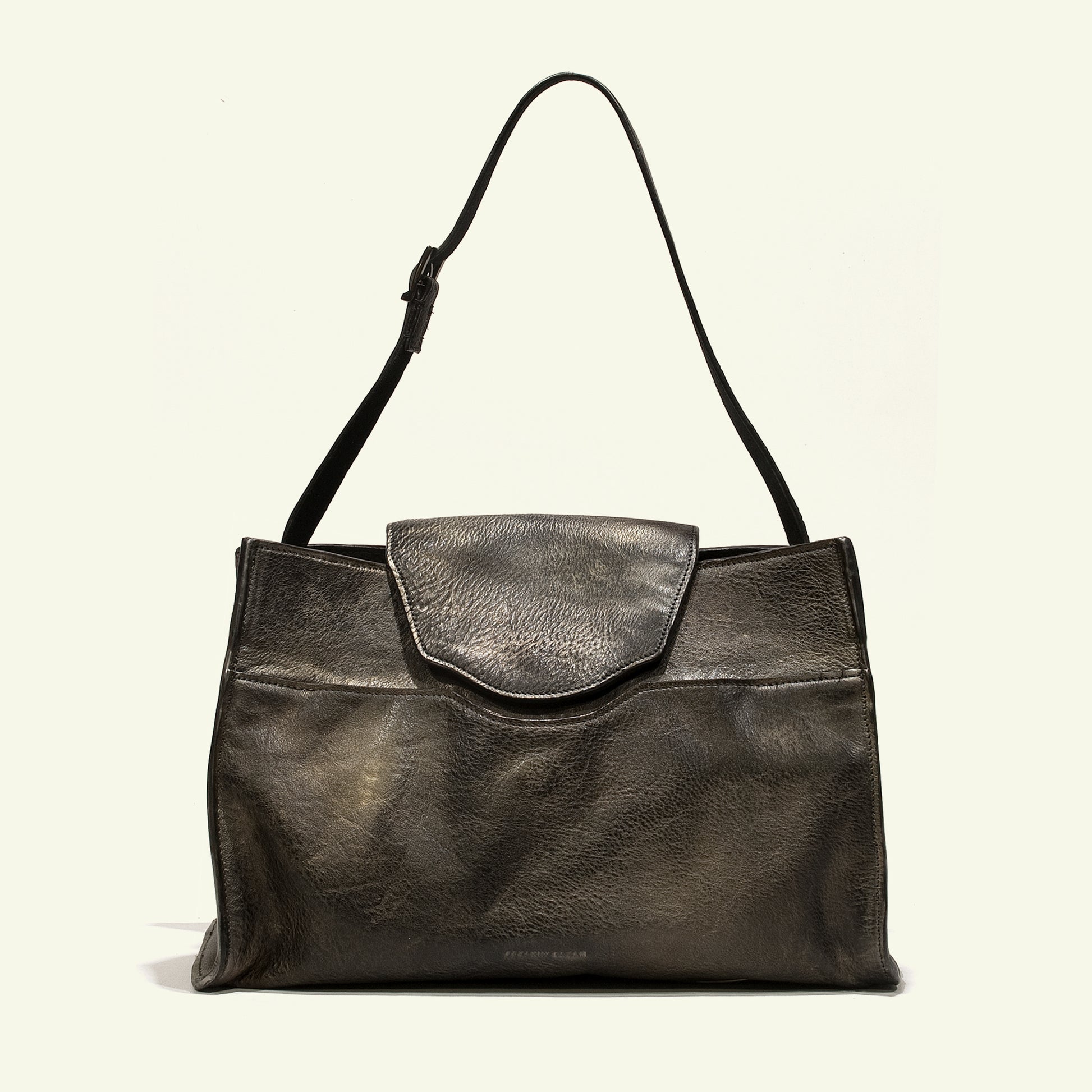 La Large Pascale in Warm Metal è una borsa in pelle morbida e destrutturata, progettata per seguire naturalmente i movimenti del corpo.