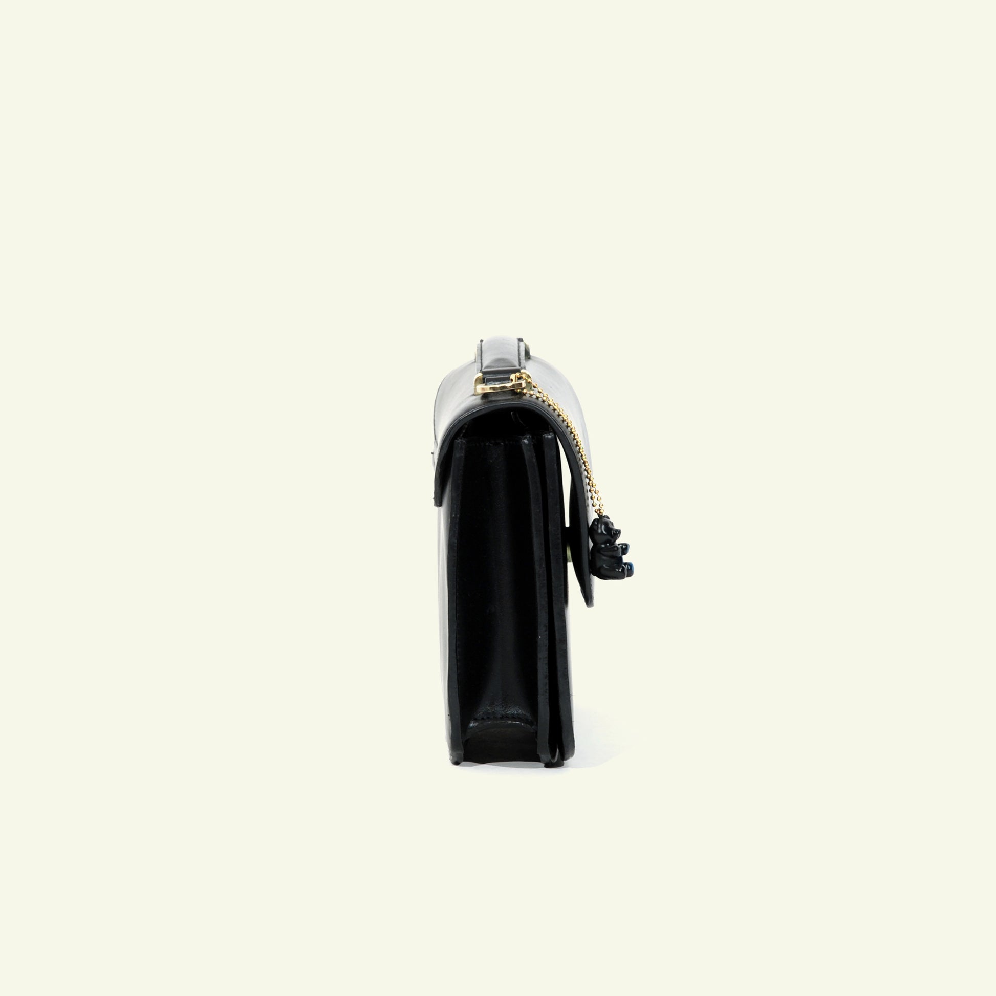 L’interno è foderato in morbida nappa d’agnello e ogni fase — dal taglio della pelle alla verniciatura dei bordi — è eseguita interamente a mano.