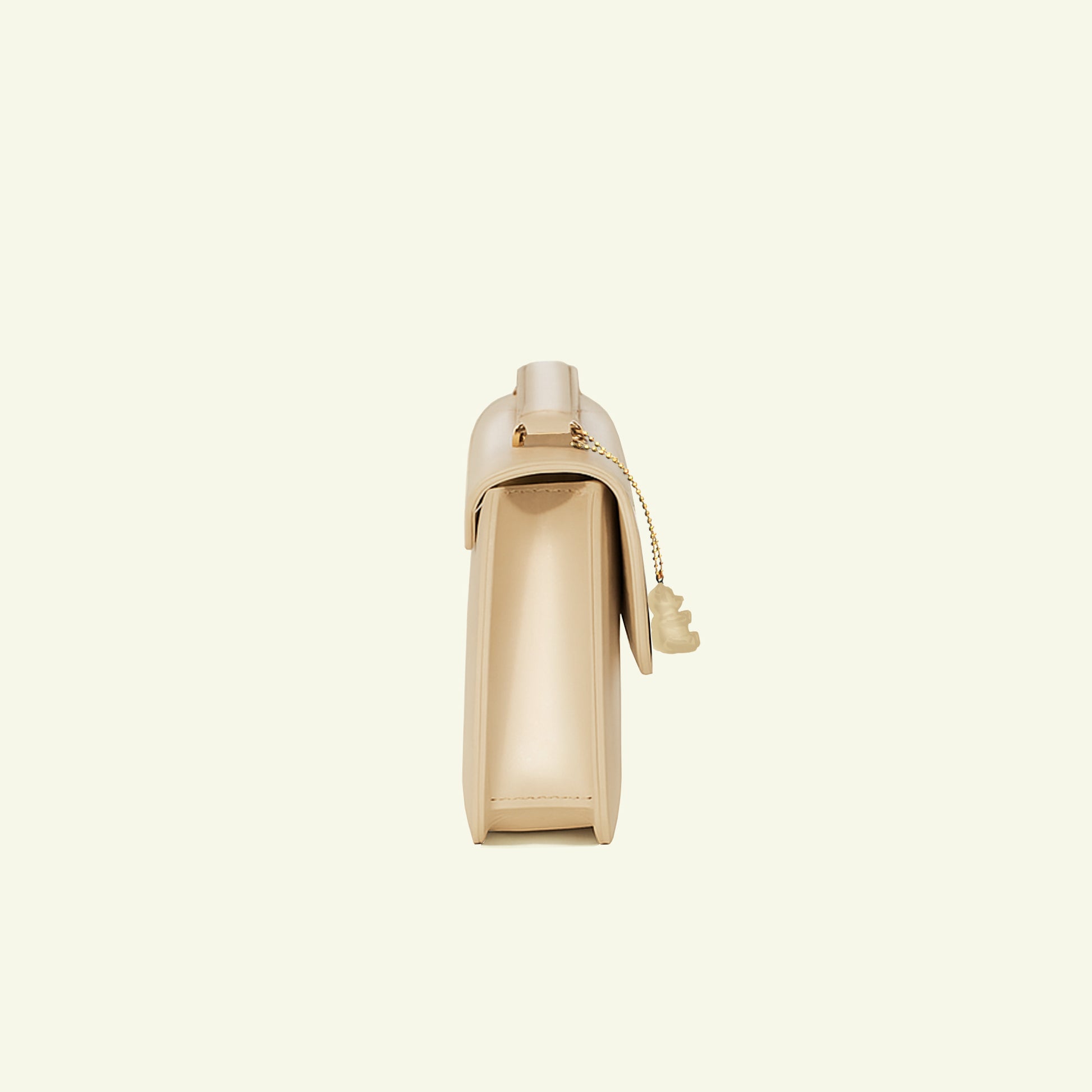 Realizzata a mano a Firenze in morbida pelle di vitello italiana, questa versione rivela una tonalità beige calda che addolcisce la precisione architettonica del design Tori.