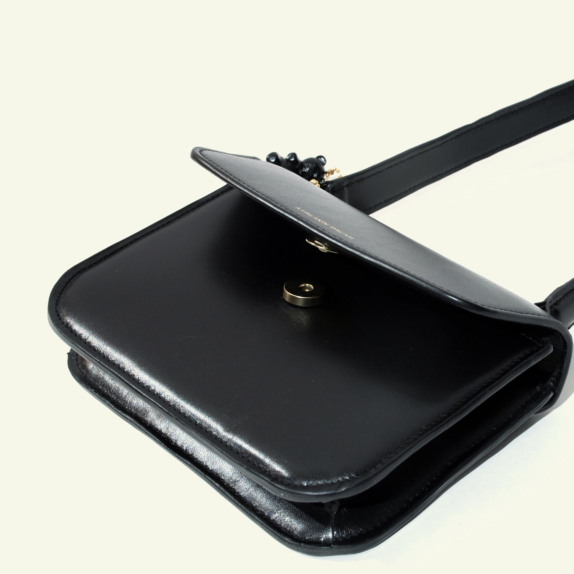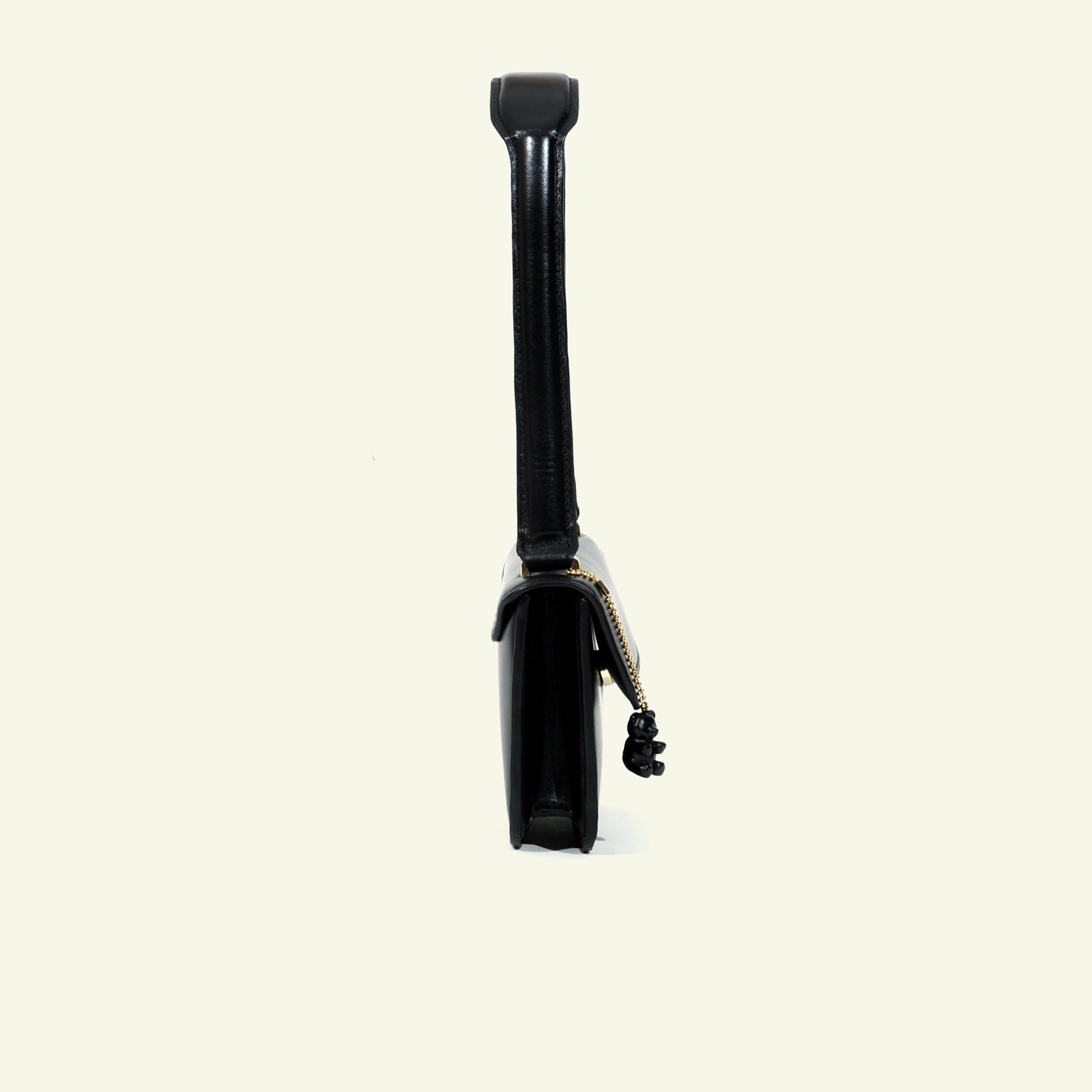 Il suo minimalismo raffinato e il tono nero classico la rendono un essenziale senza tempo, capace di completare ogni look con sobria sofisticatezza e maestria artigianale.