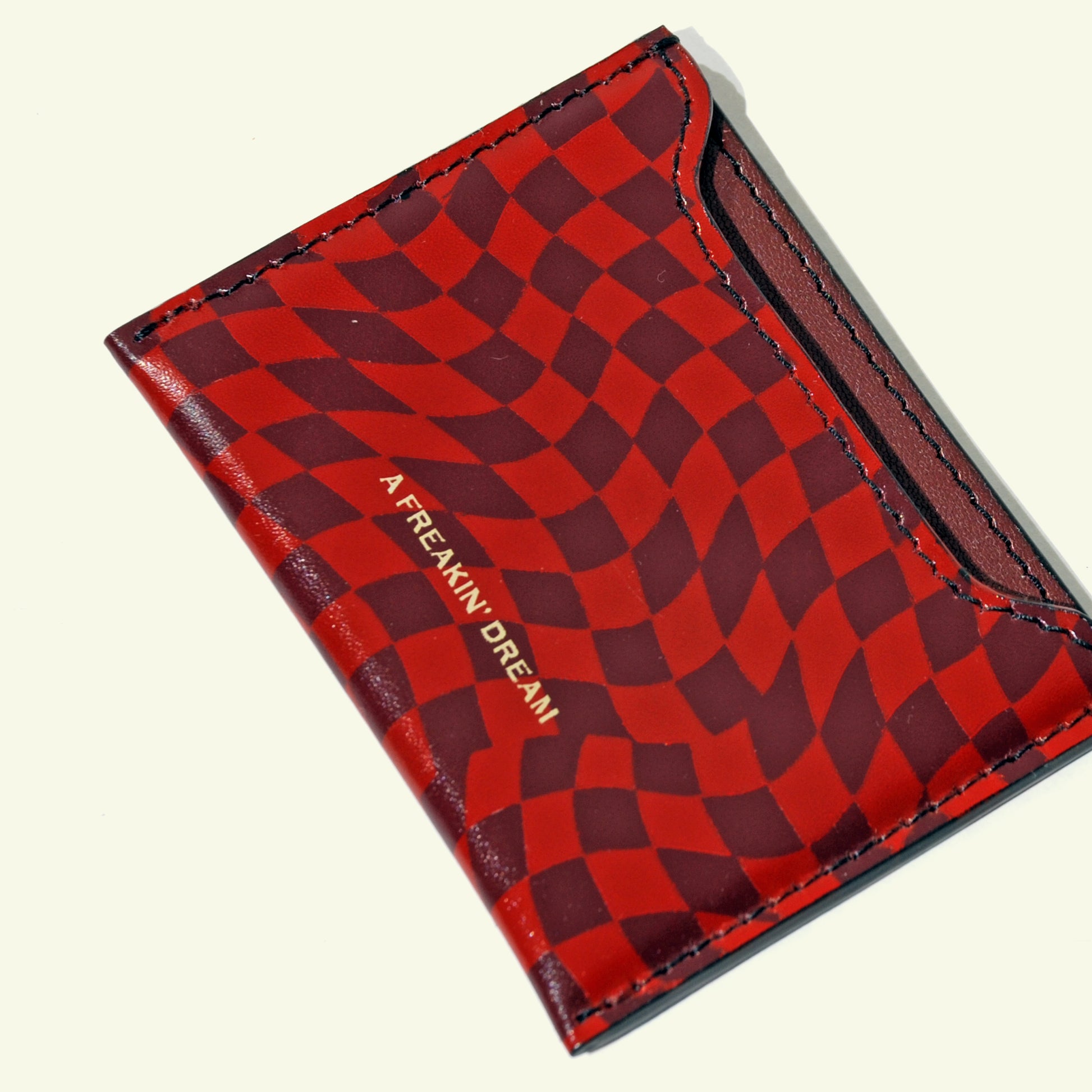 Porta carte in vitello aerografato "Red Symphony Damier"