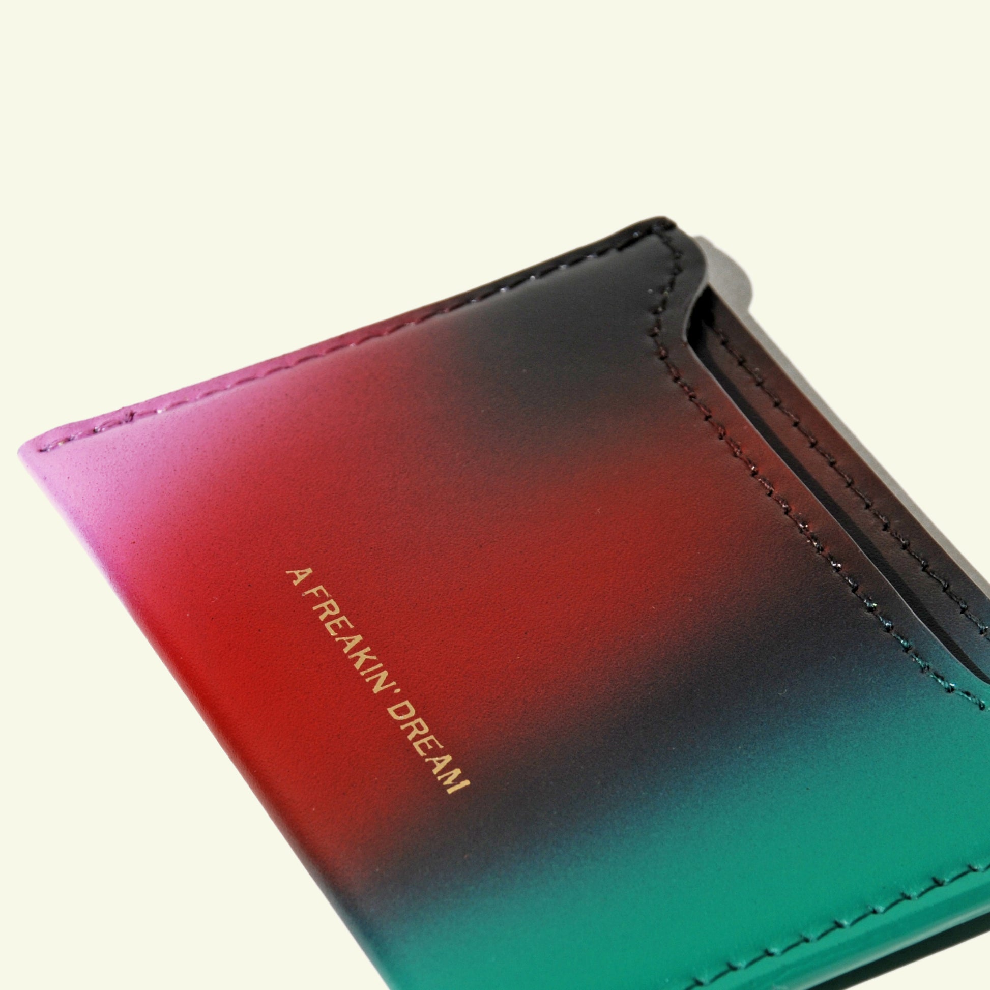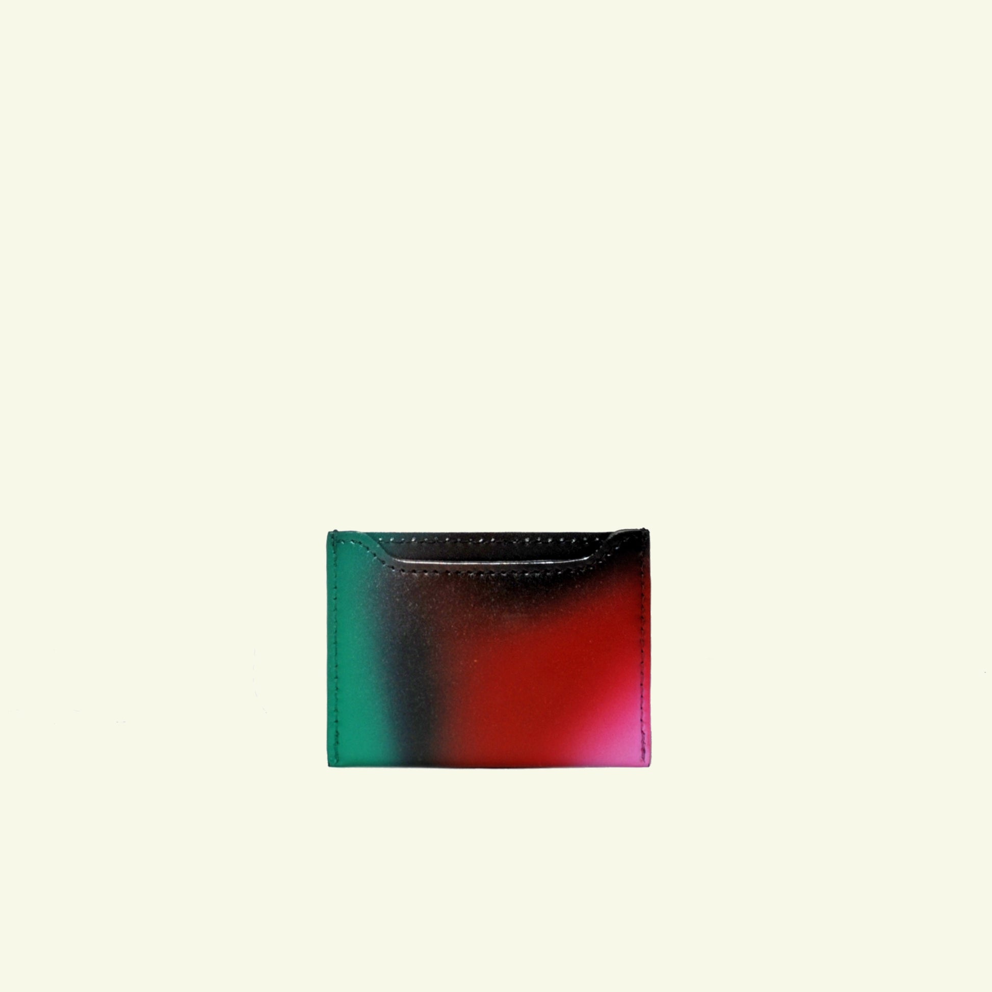The Card Holder in “Colors Match Black” is made of airbrushed black calfskin with soft pink, red, and green gradients. The hand-applied airbrush finish gives each holder unique artistic depth, designed with 2 compartments for essentials.