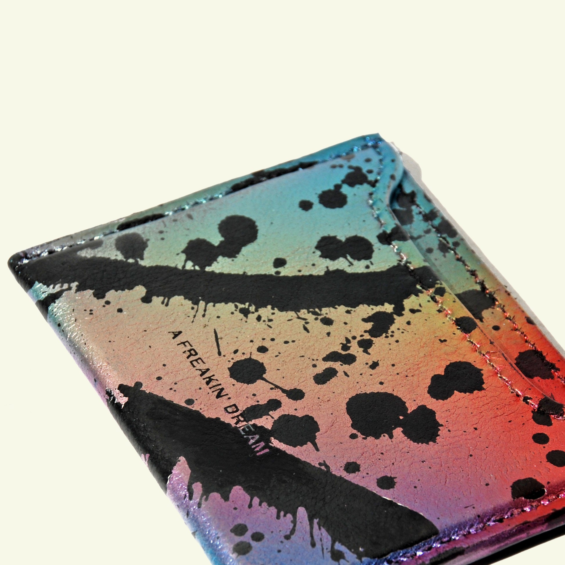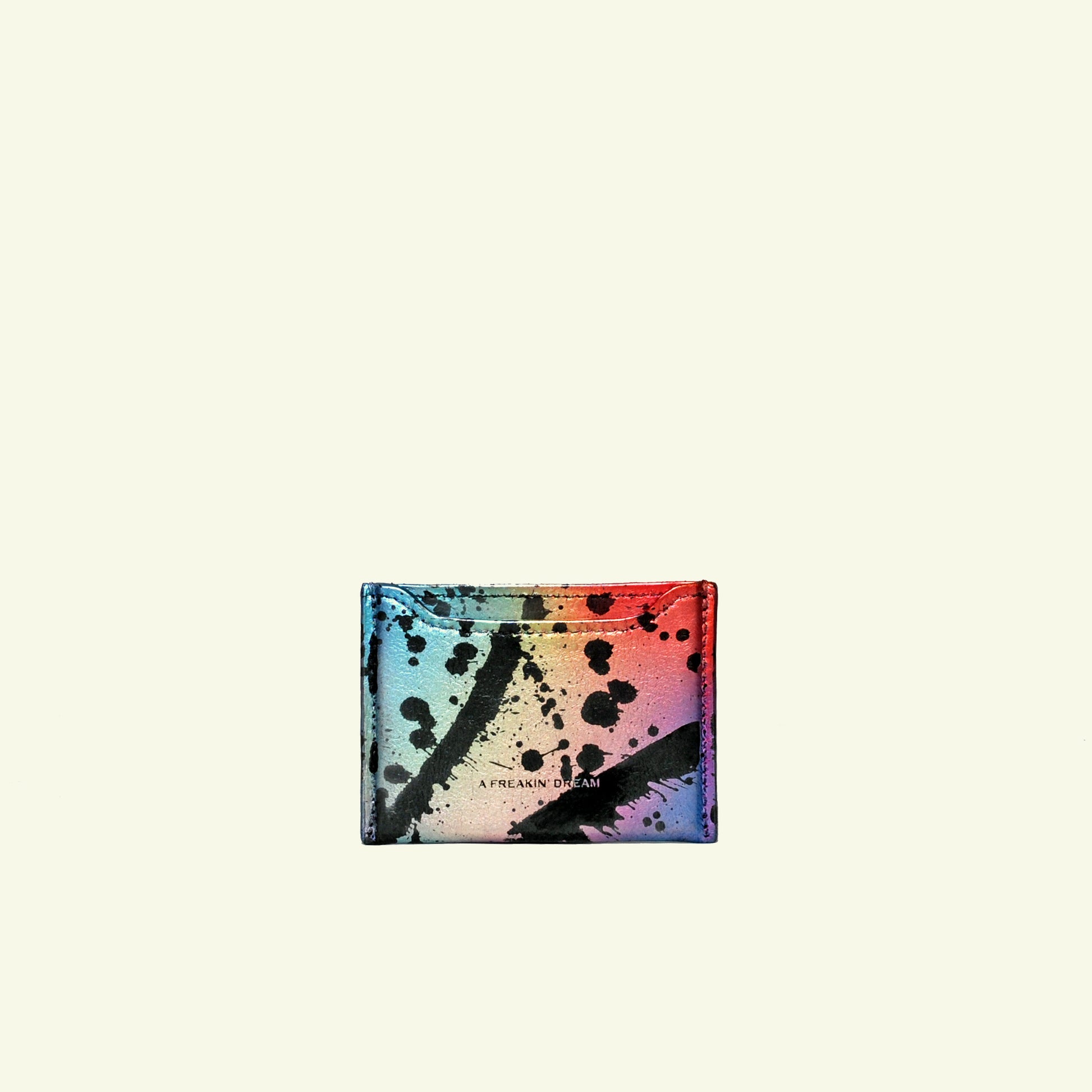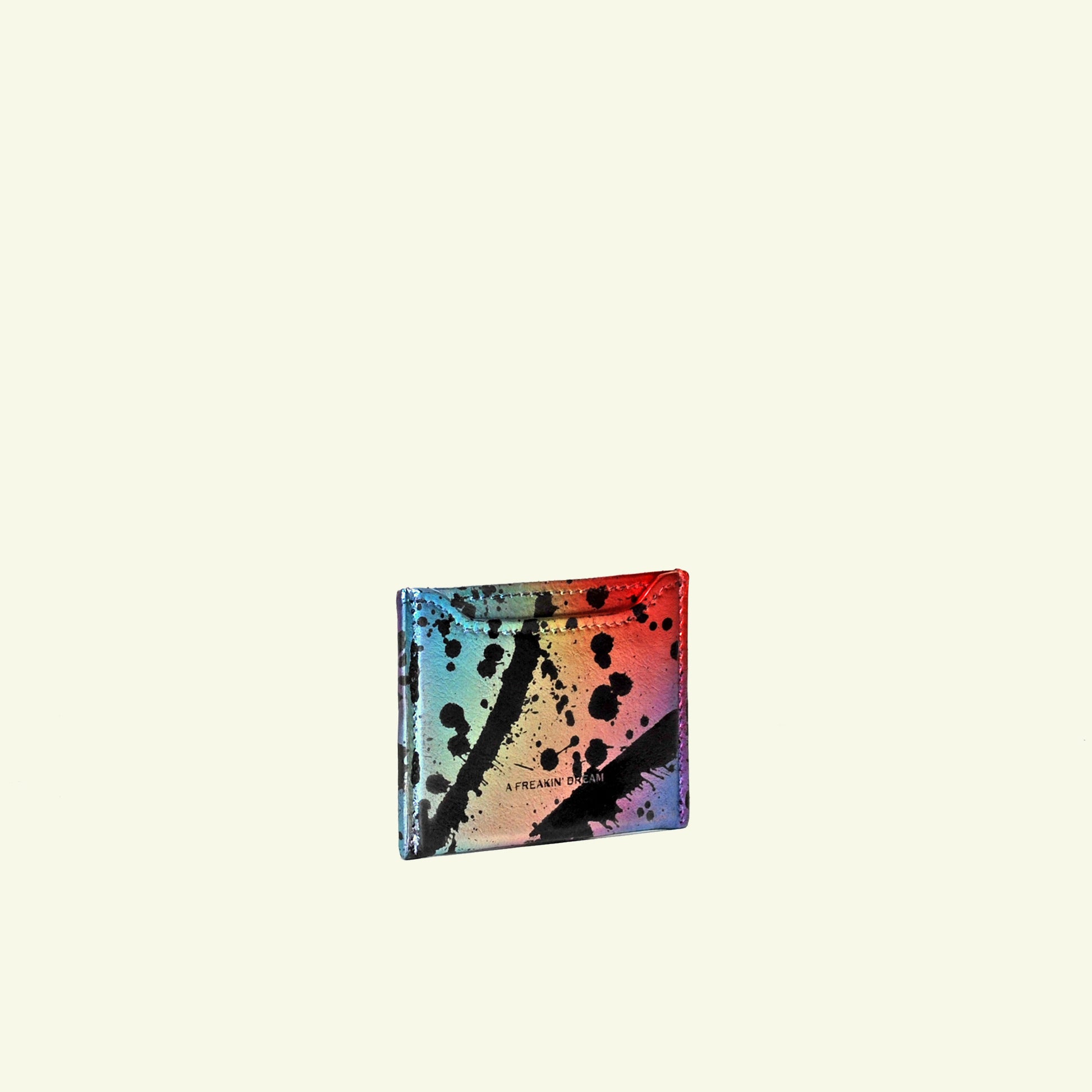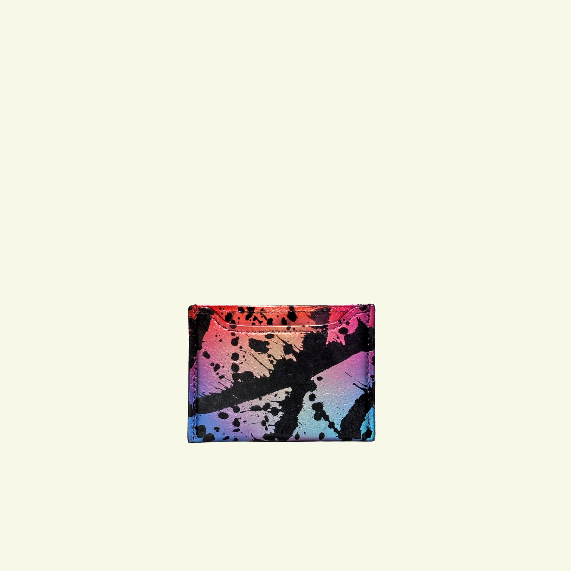 Card holder in airbrushed calfskin "Dripping Rainbow"