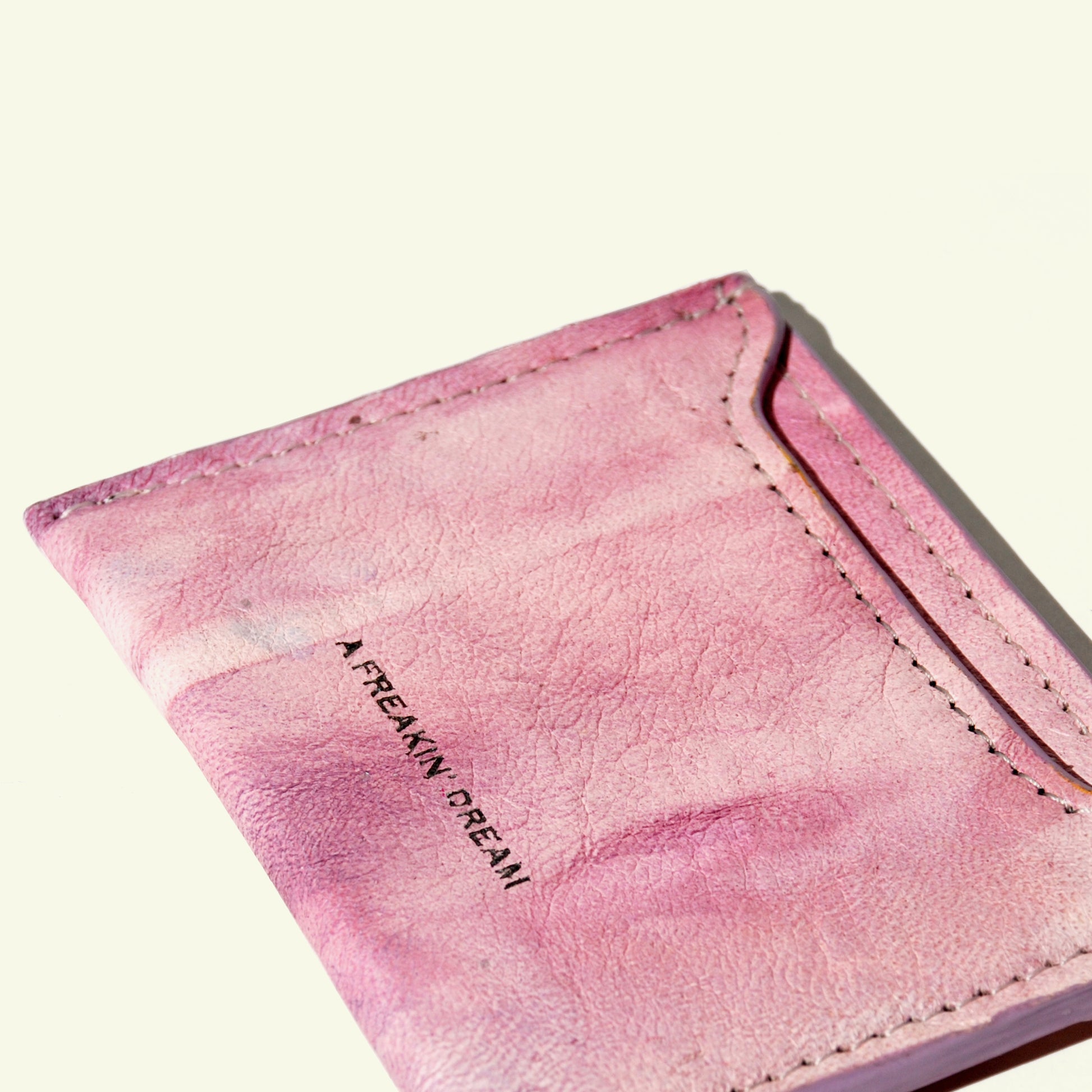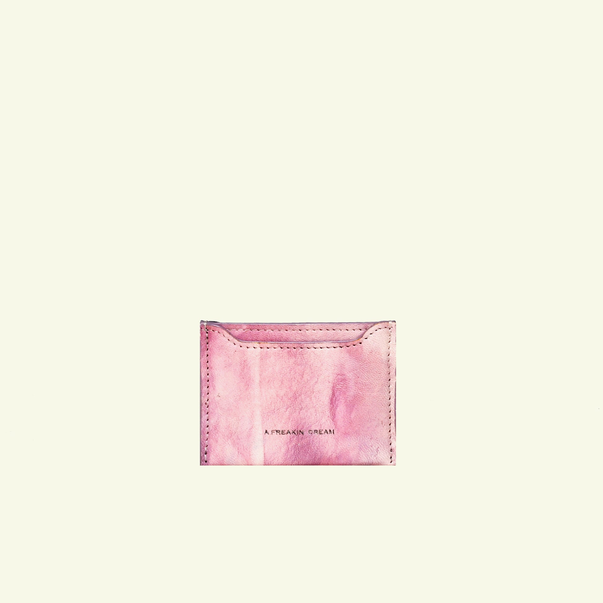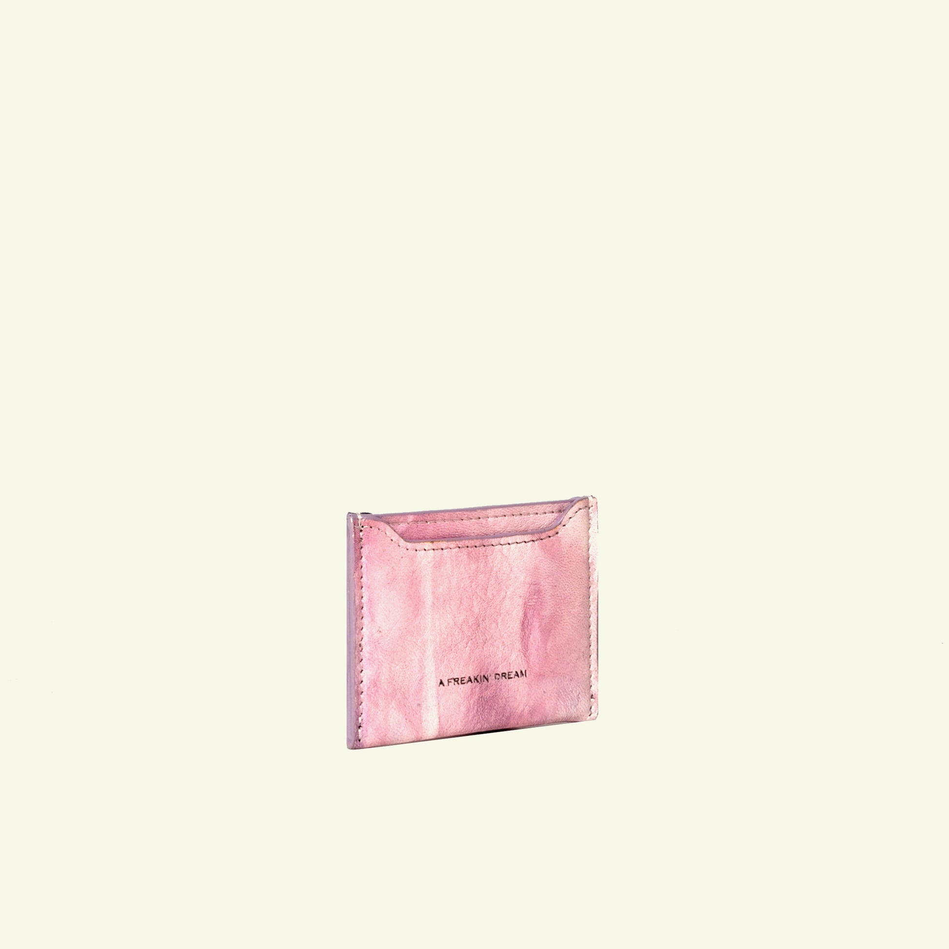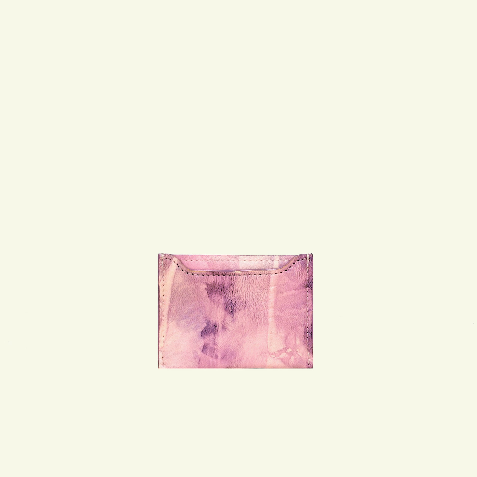The Card Holder in “Skin” features soft pink tie-dye airbrushed calfskin, entirely hand-applied. Its 2 compartments offer practical elegance while showcasing delicate artisanal detail.