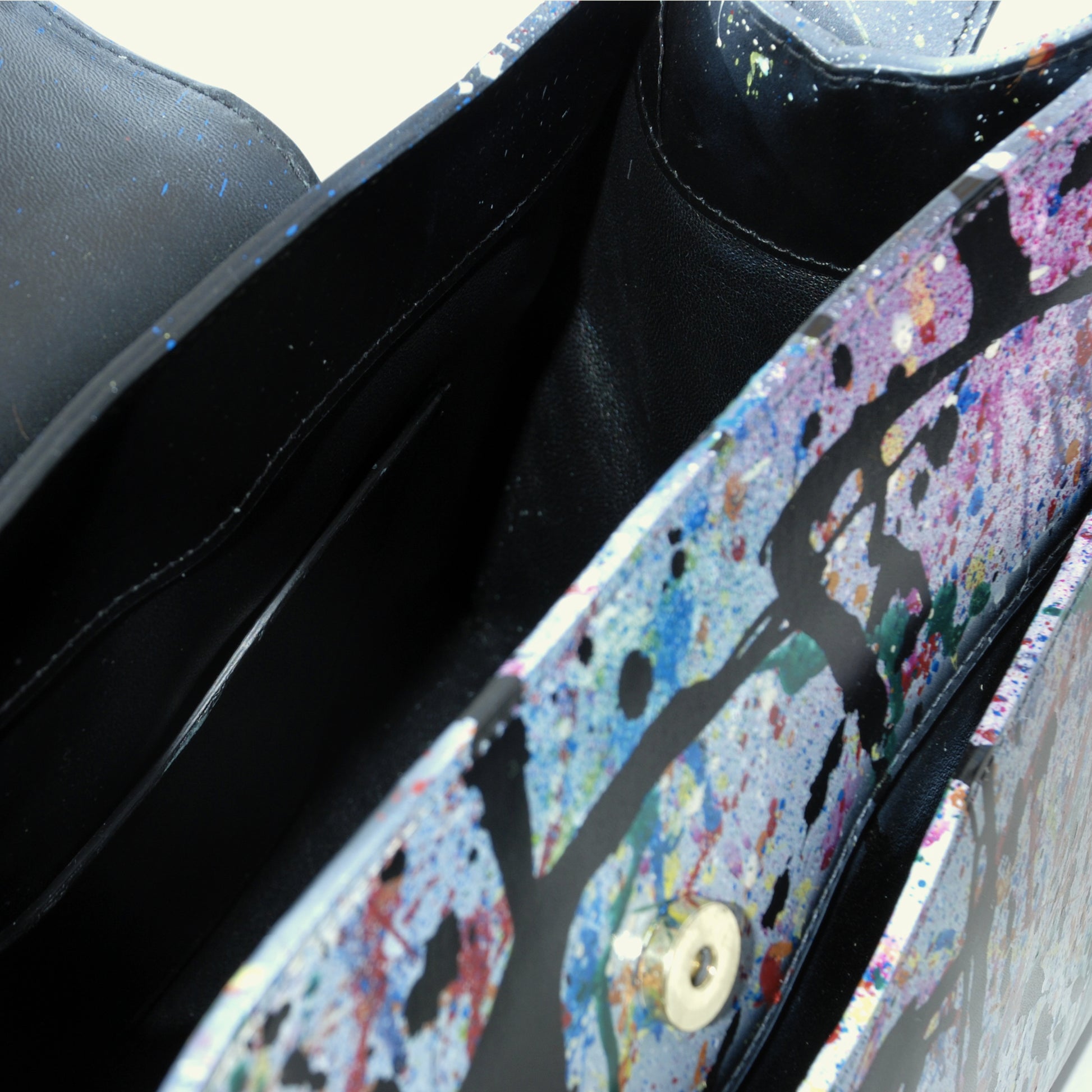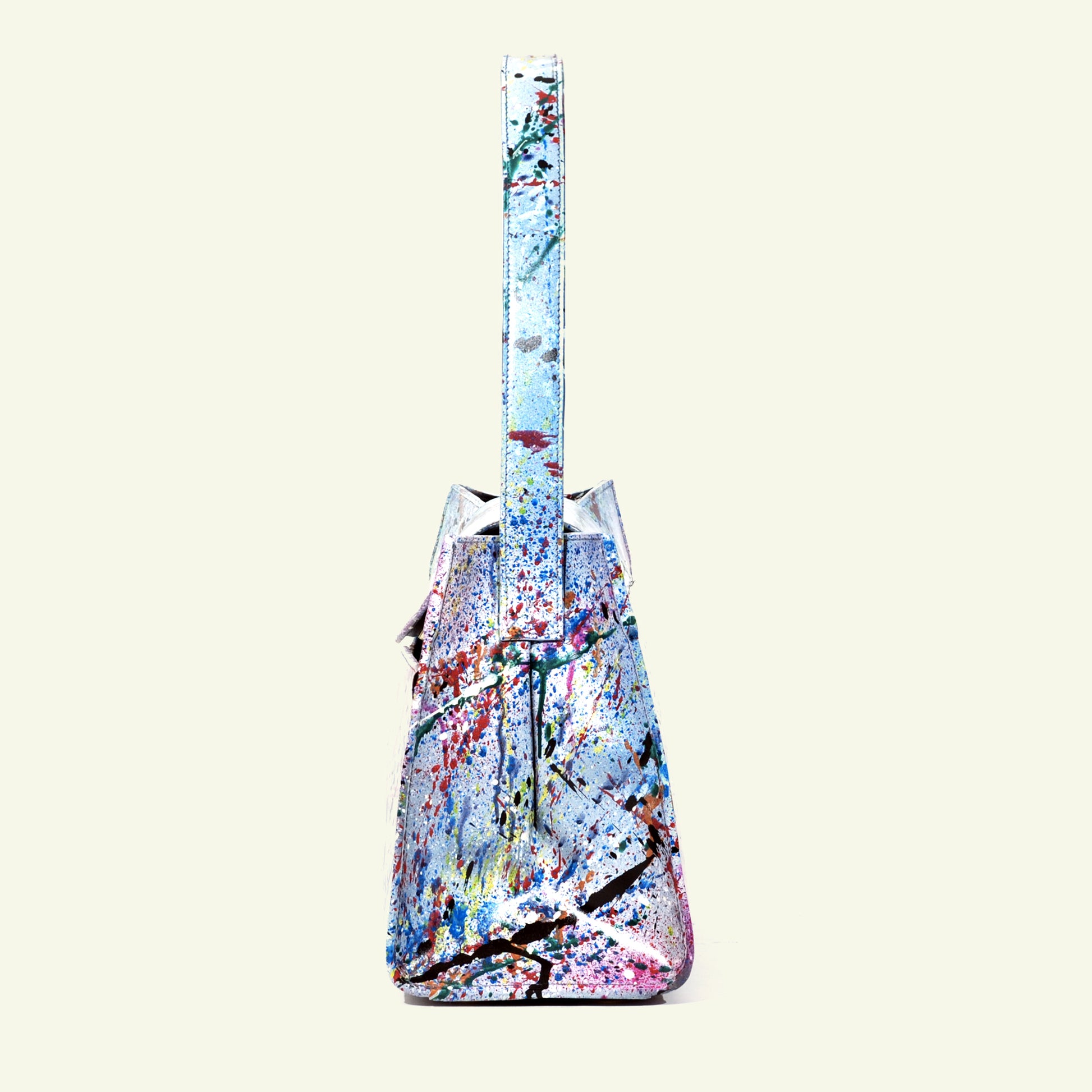 The Large Pascale Bag in “AFD Multicolor Attack” is a true artistic statement piece. Multiple airbrushing techniques merge to create a bold multicolor composition, transforming the leather surface into a canvas of movement and energy. Oversized yet elegant, this bag embodies the essence of wearable art — a collector’s item for those who embrace individuality.