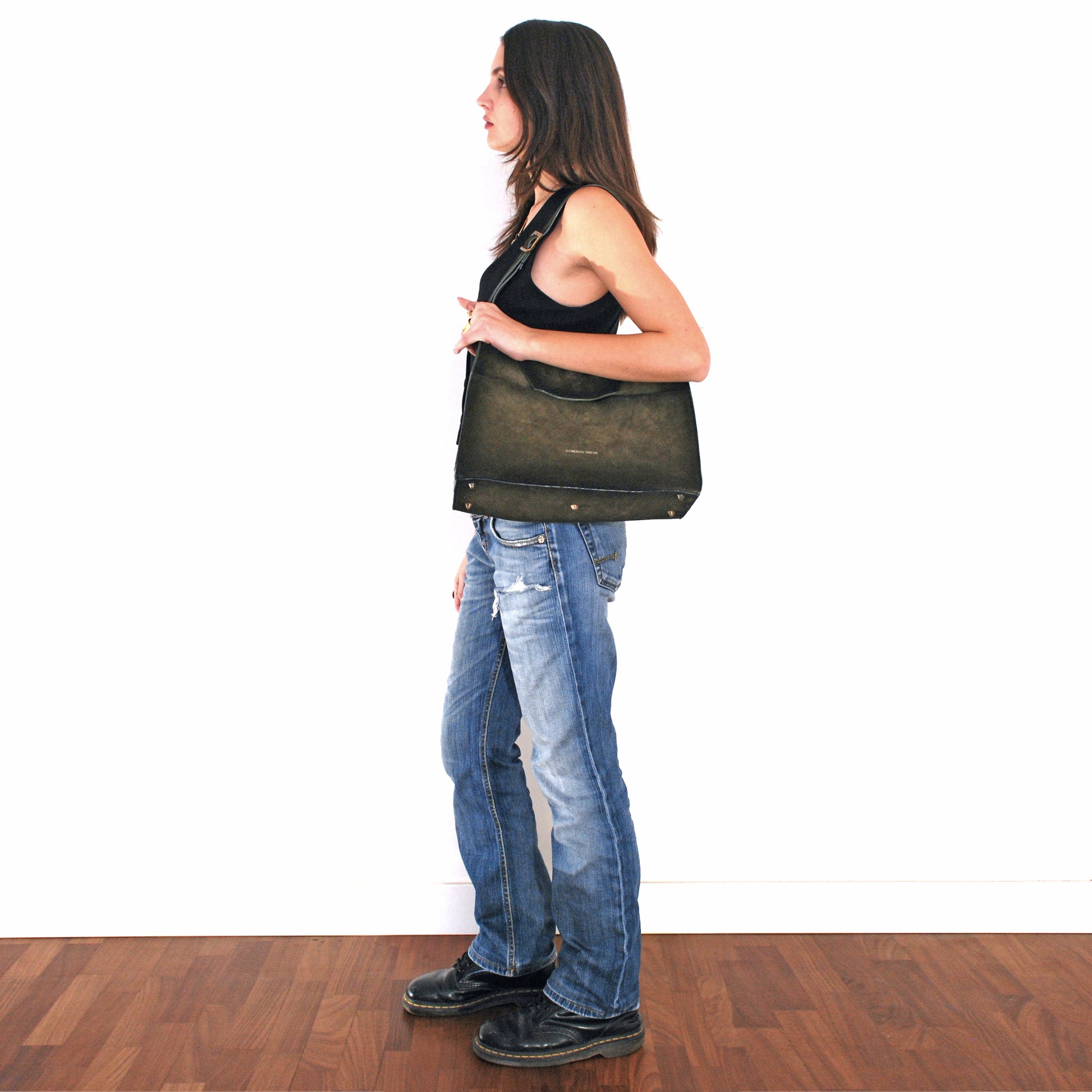 We don’t rely on factories or mass production. Each piece is built in our small atelier with selected Italian calfskin, hand-airbrushed in layers, and assembled with care and precision.