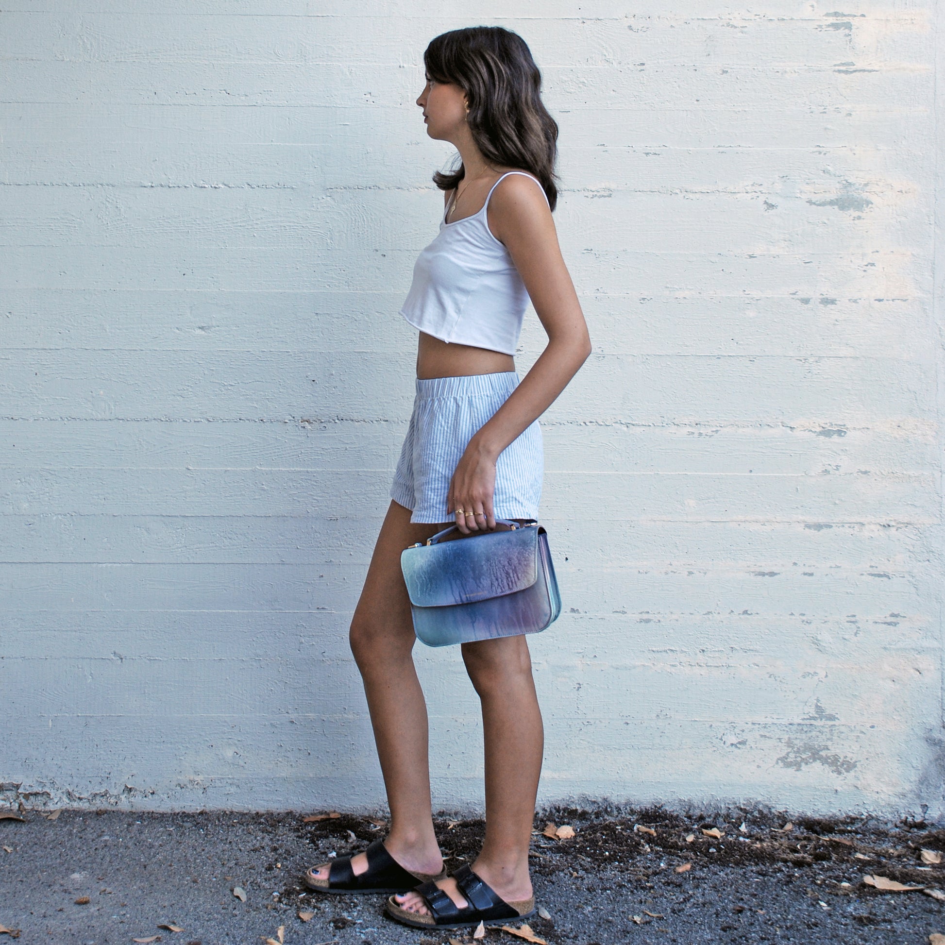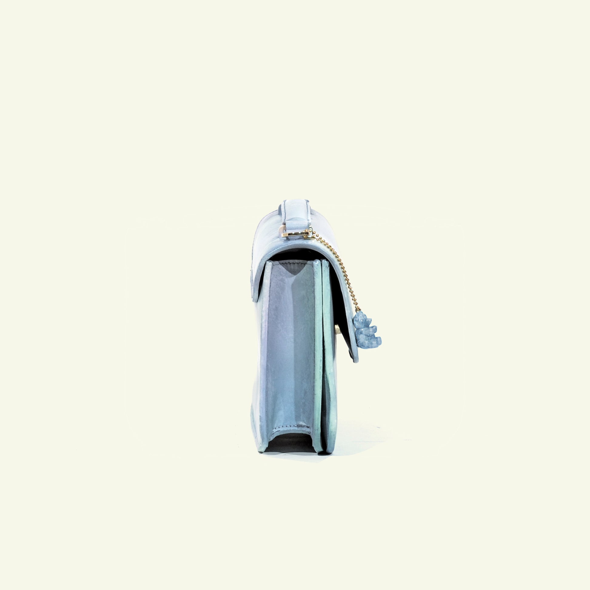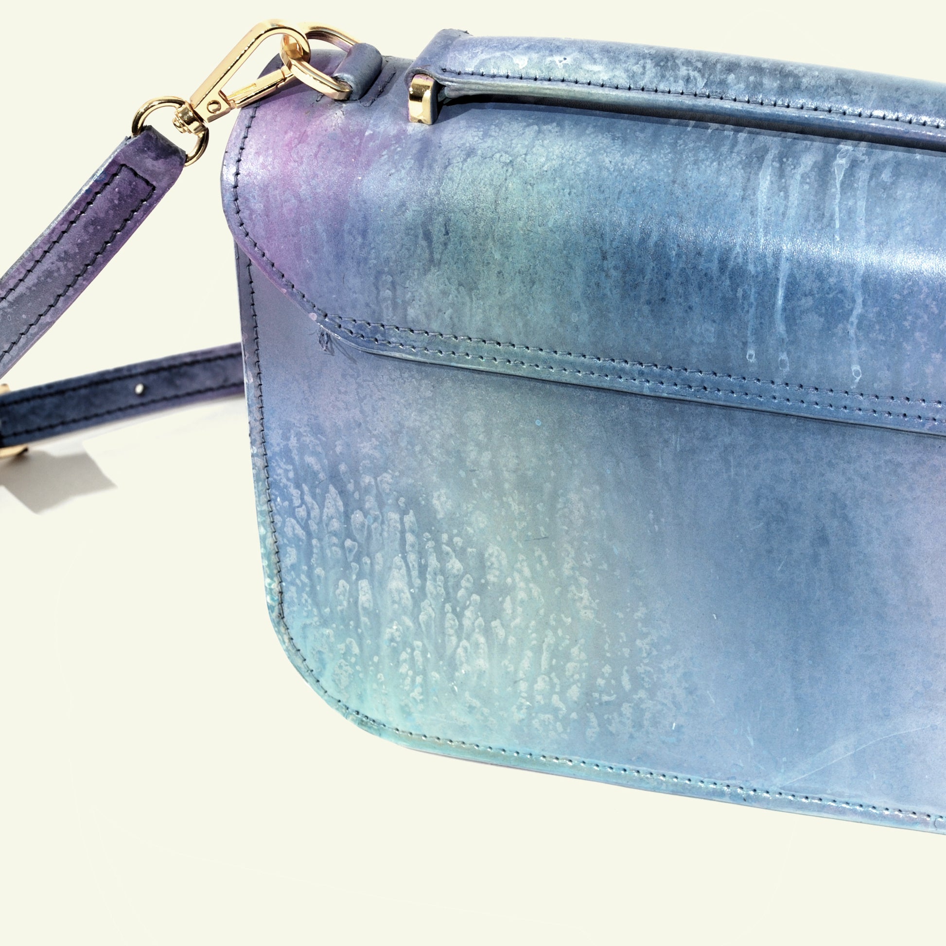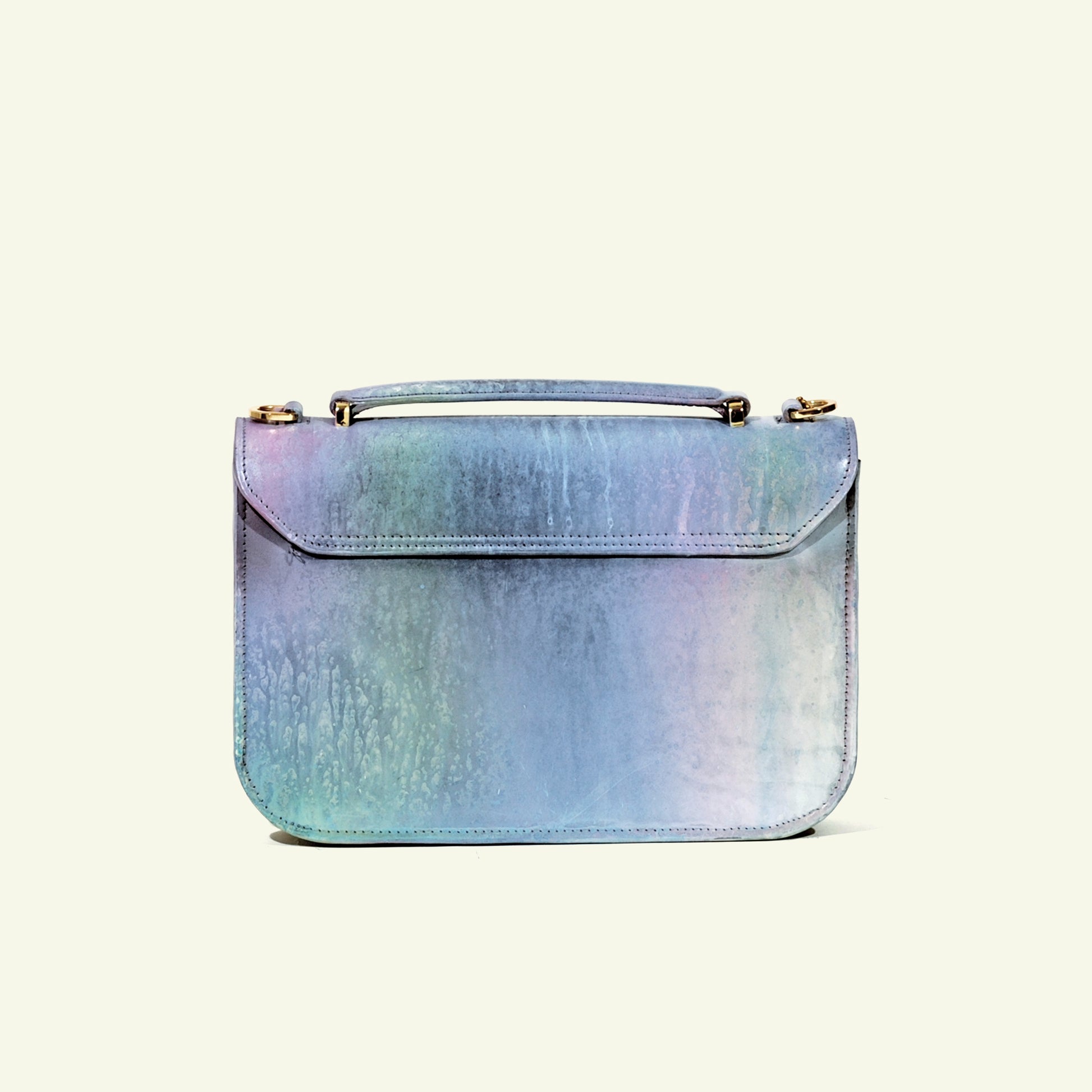 We don’t rely on factories or mass production. Each piece is built in our small atelier with selected Italian calfskin, hand-airbrushed in layers, and assembled with care and precision.
