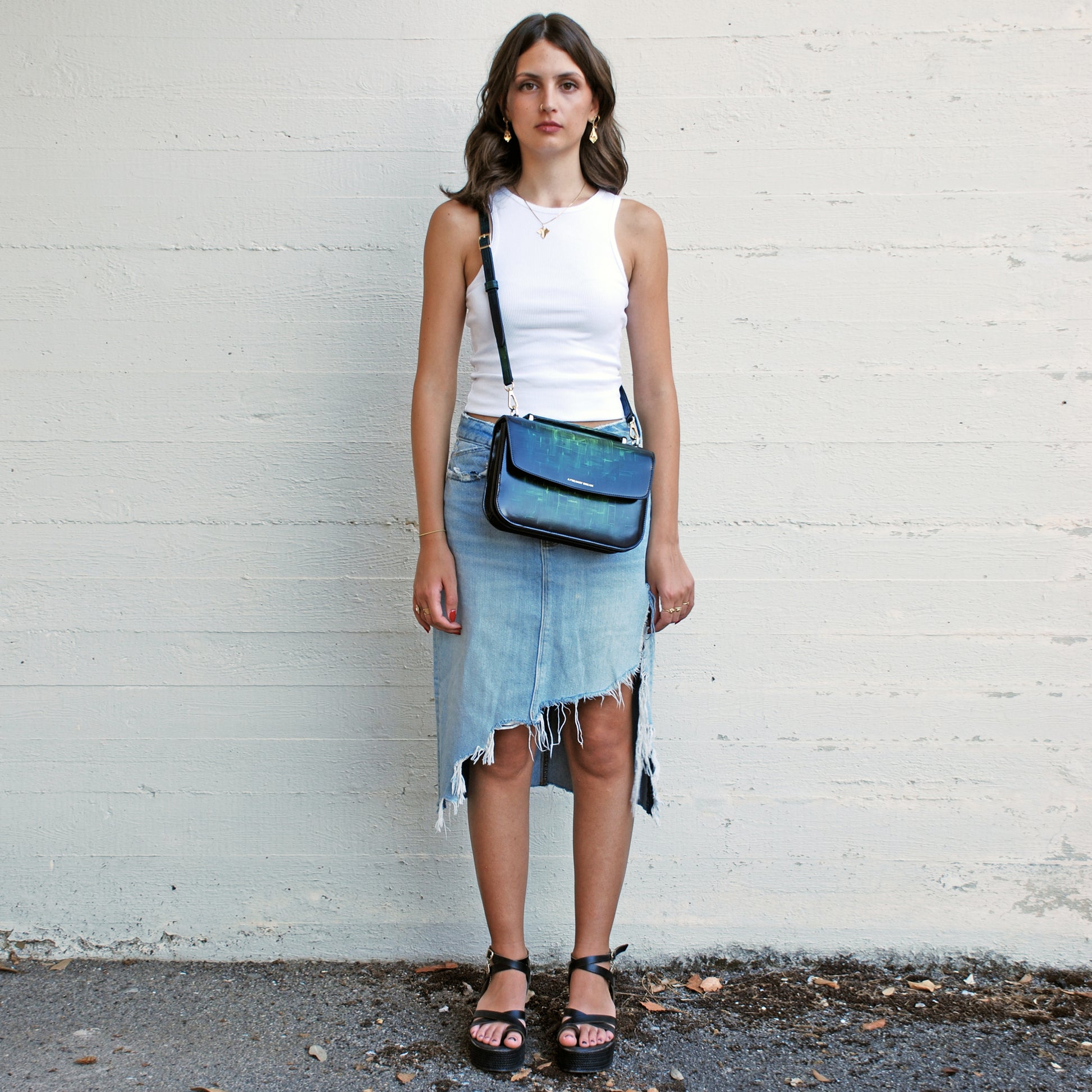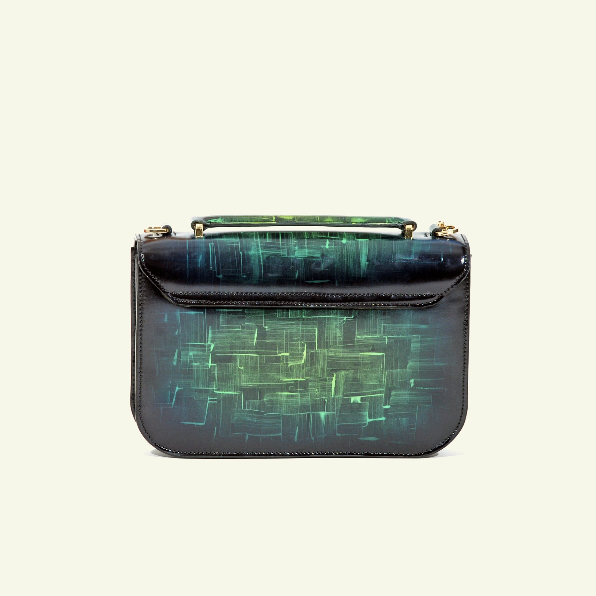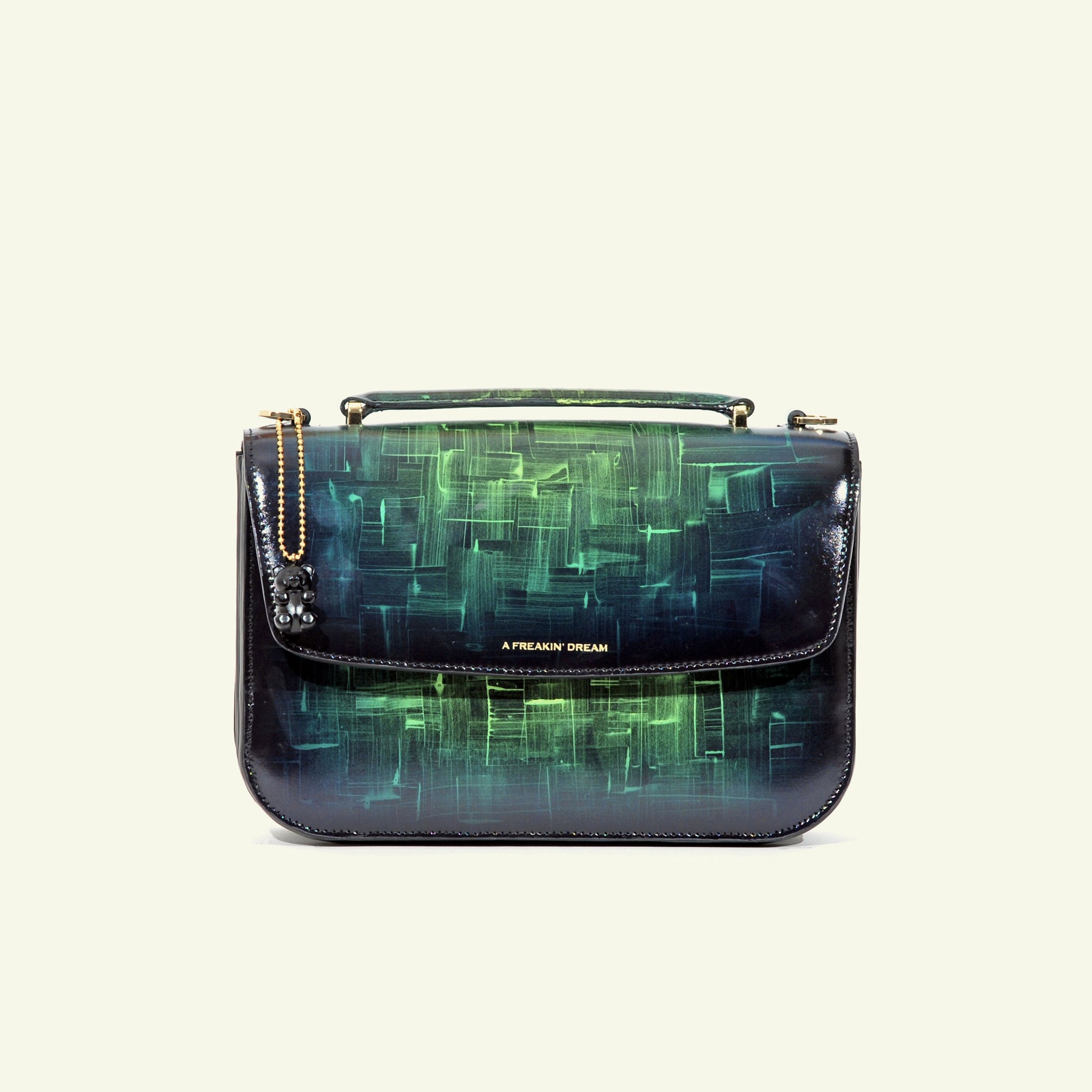 An artistic and unconventional bag that transforms a classic silhouette into a statement of creativity.