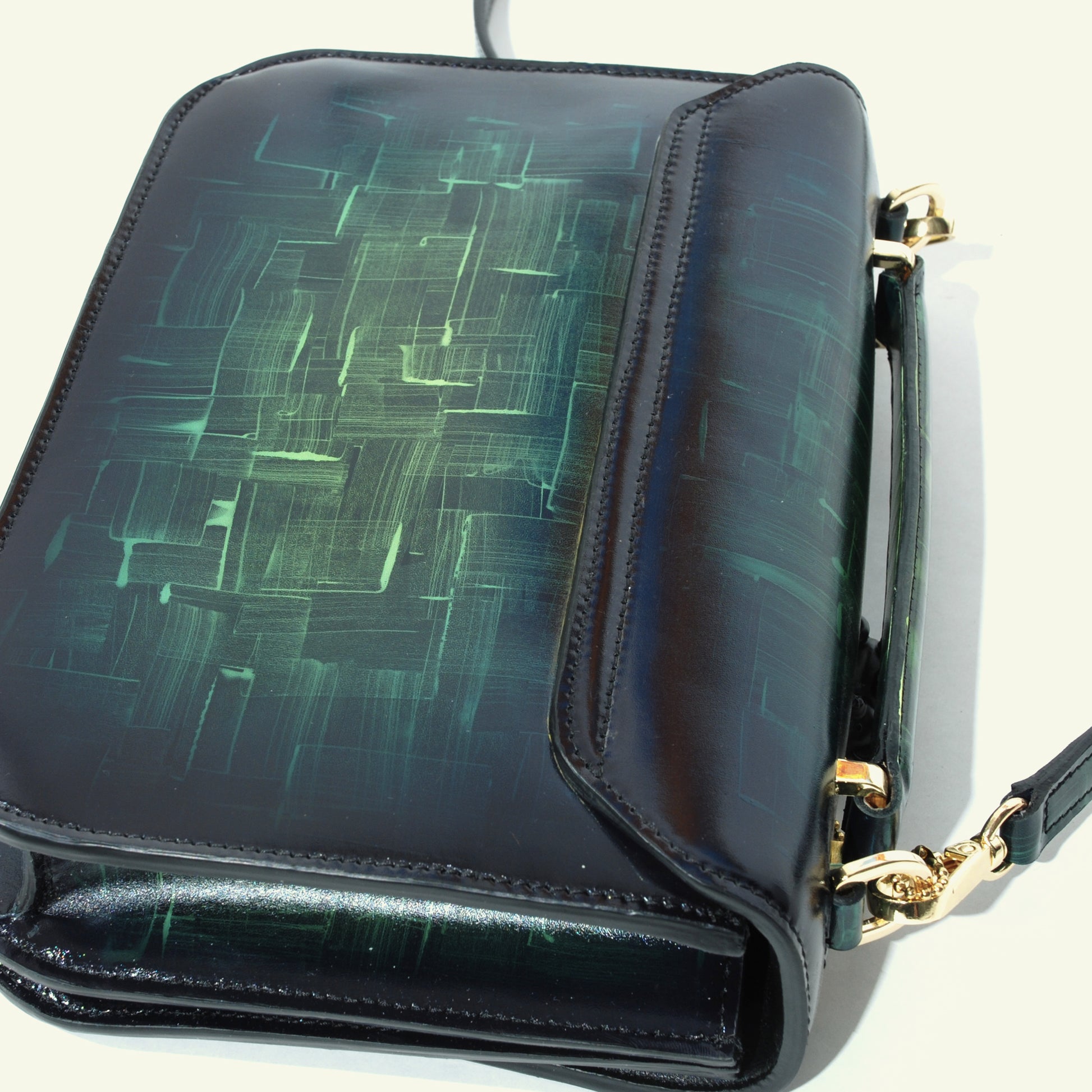 We don’t rely on factories or mass production. Each piece is built in our small atelier with selected Italian calfskin, hand-airbrushed in layers, and assembled with care and precision.