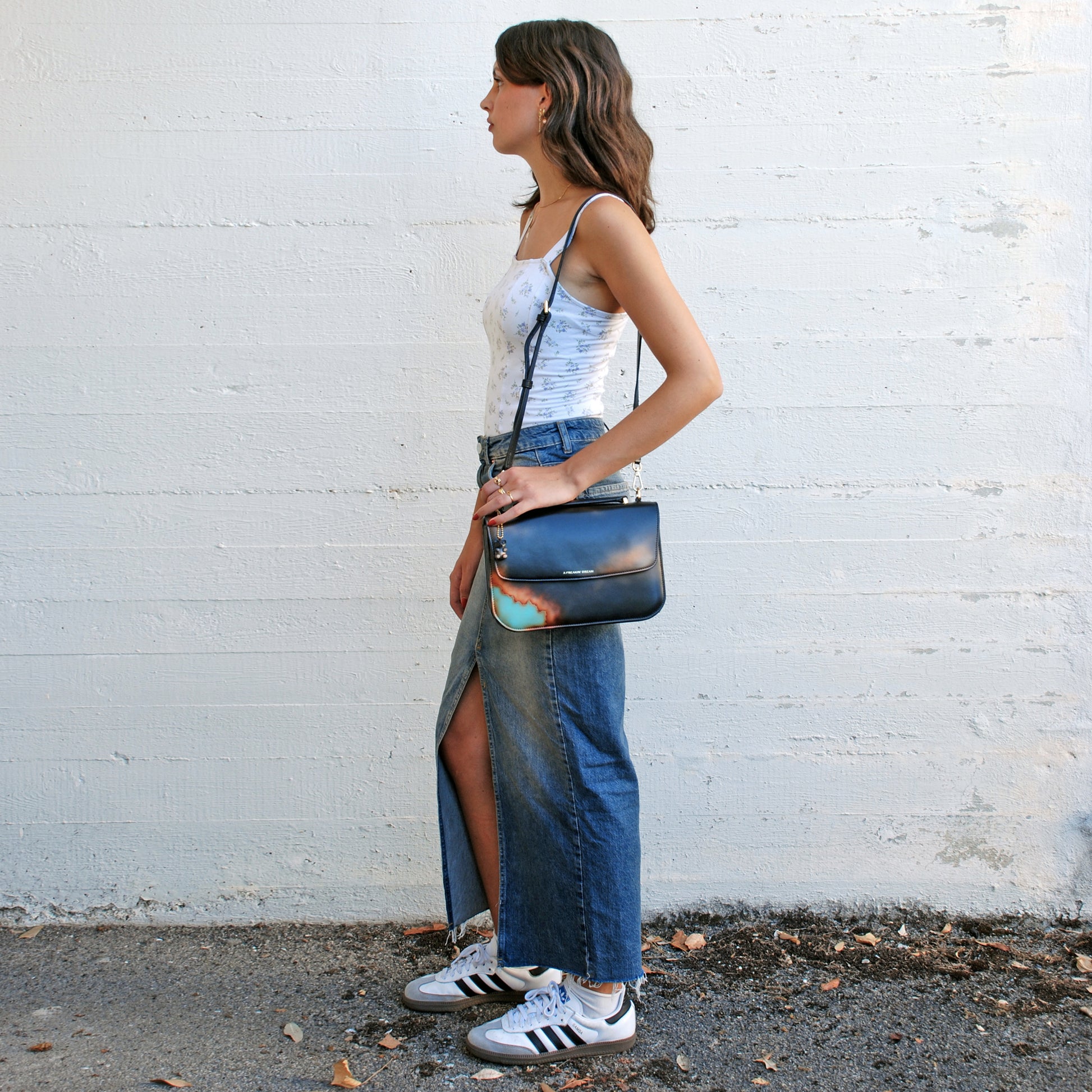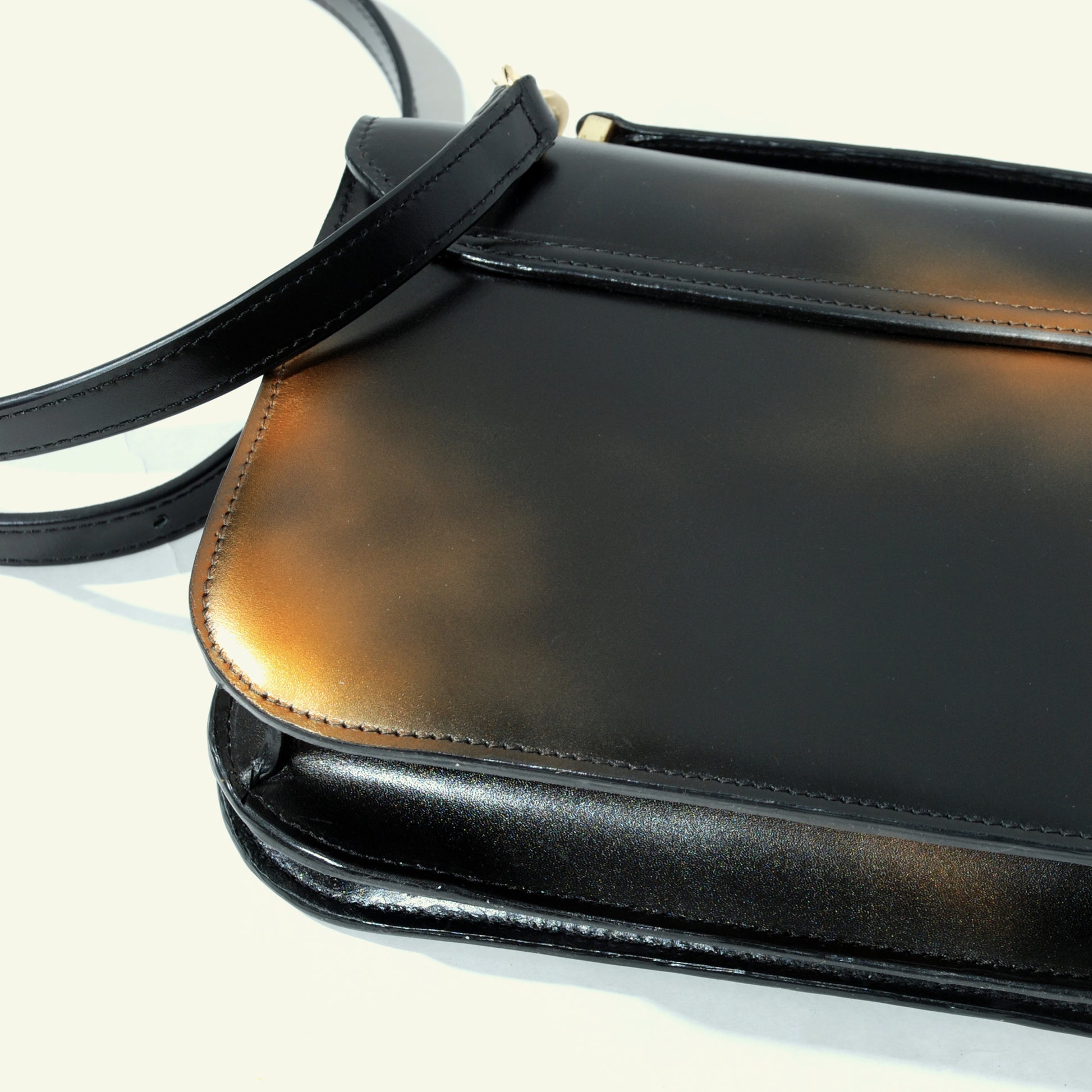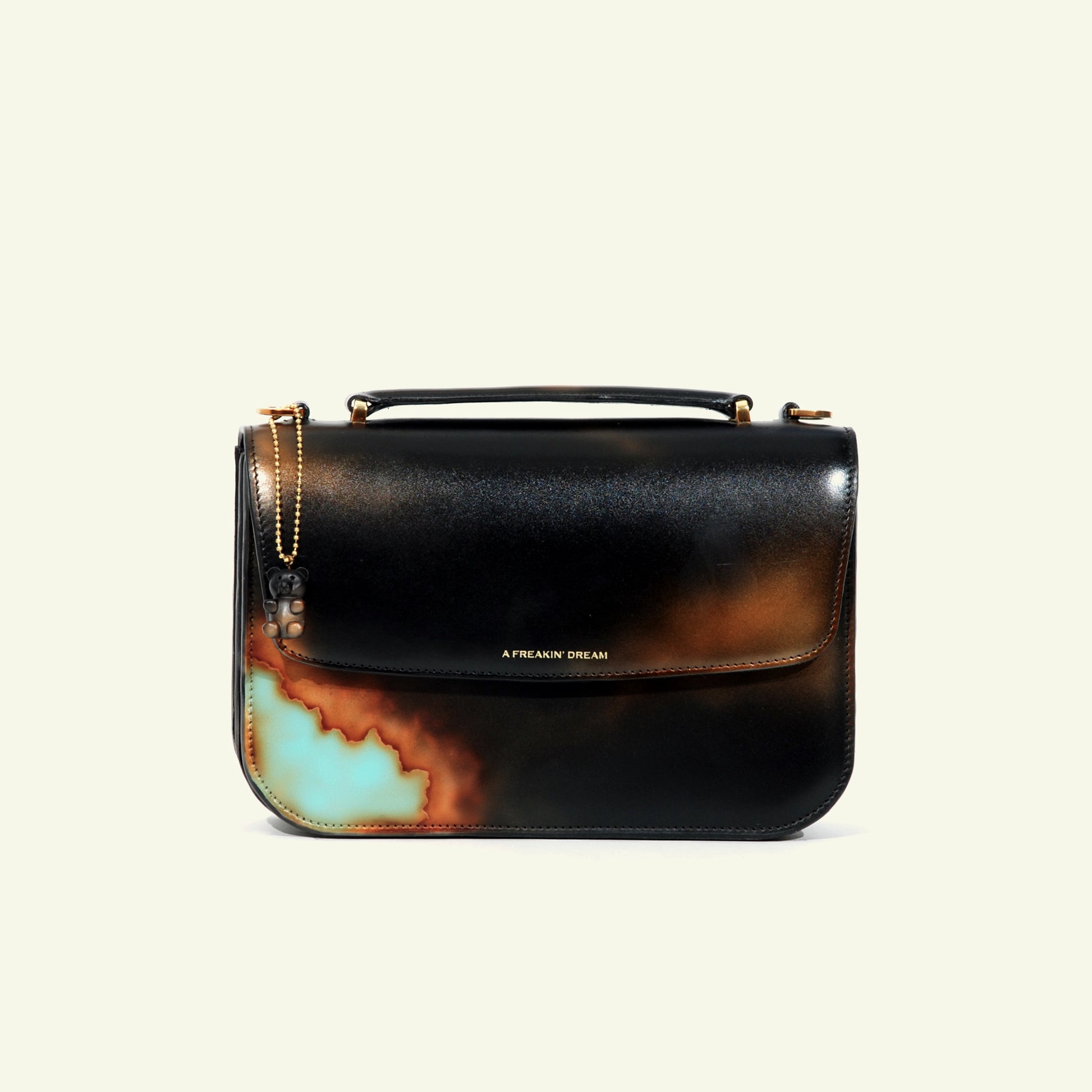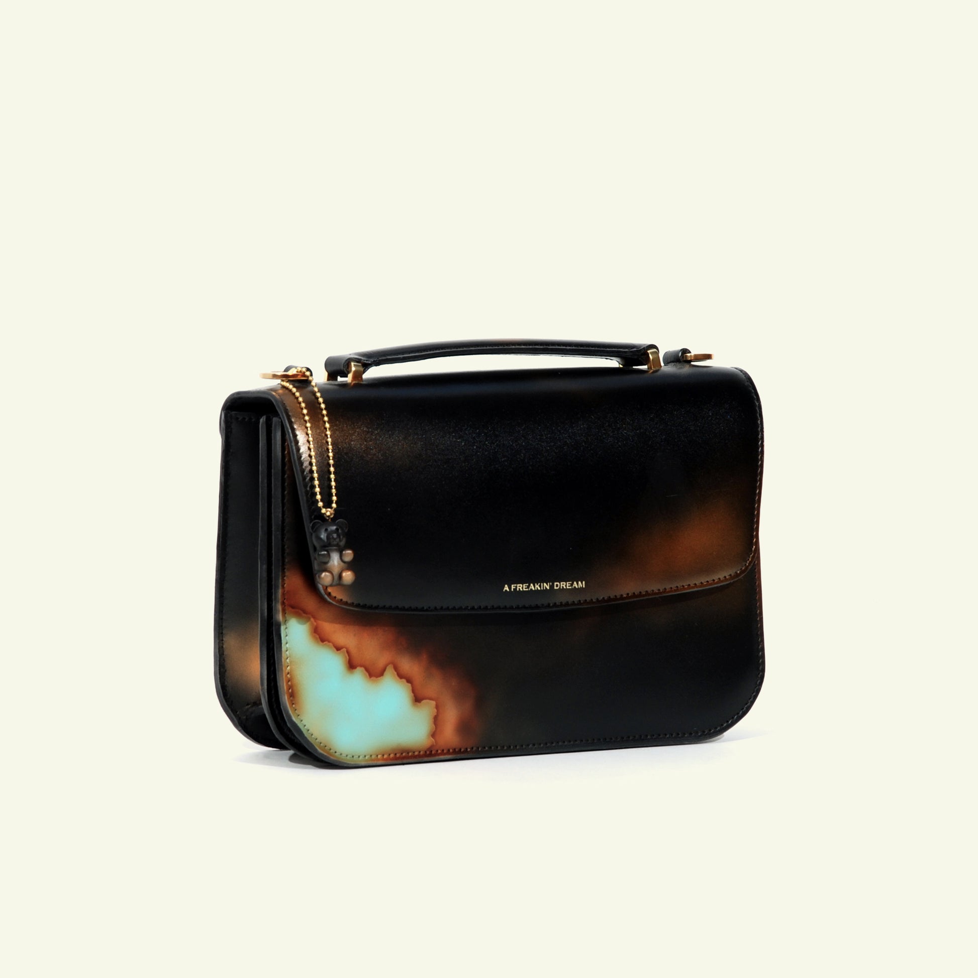 We don’t rely on factories or mass production. Each piece is built in our small atelier with selected Italian calfskin, hand-airbrushed in layers, and assembled with care and precision.